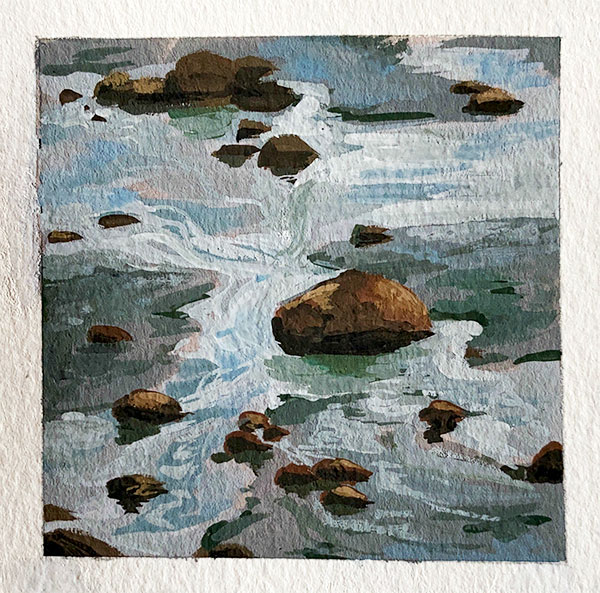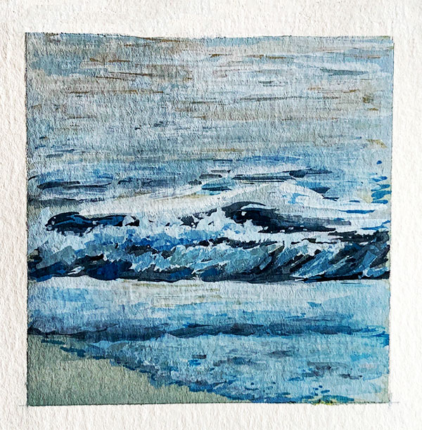 As luck would have it, I had the privilege of going to the beach in December, so I decided to paint some photos that I took while I was there! I usually like to work on big canvases, but I wanted these to be small (they're 3 by 3 inches). It's pretty hard to get bogged down in details when you're working on that scale, so I got to be looser than I usually am. This was also a challenge for me because I think water is hard to paint, but nevertheless, I persisted.